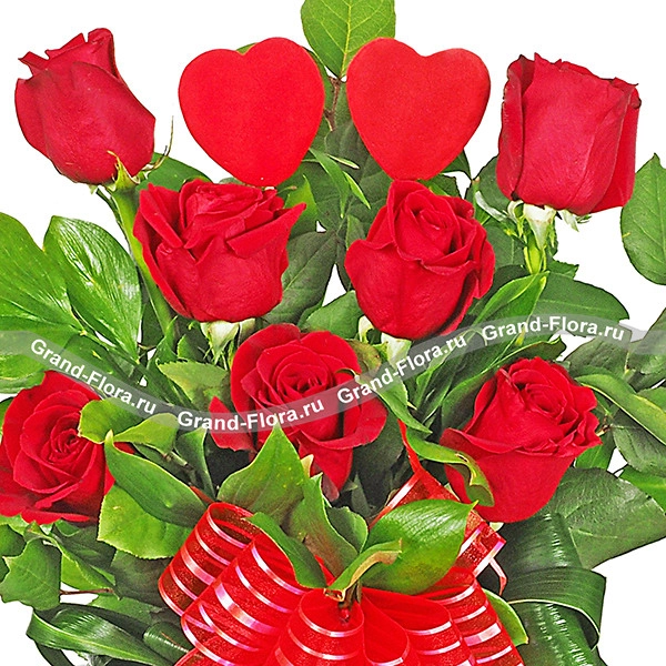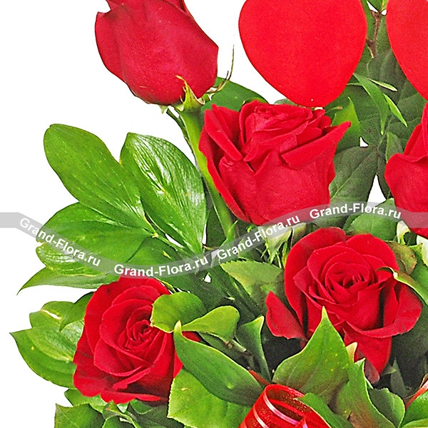 Яркое великолепие букета из роз «От всего сердца», словно магический талисман, рожденный весенним солнцем. Розы сочного, теплого оттенка, восходящего ярила в обрамлении игривой зелени, словно символизируют начало весны и любви. Подобранные в тон цветам ленты, как солнечные лучи пронизывают композицию. Если бы чувства можно было подержать в руках – они выглядели бы именно так – как этот букет, а два сердечка в центре этой композиции не оставят никаких сомнений, относительно Ваших намерений.